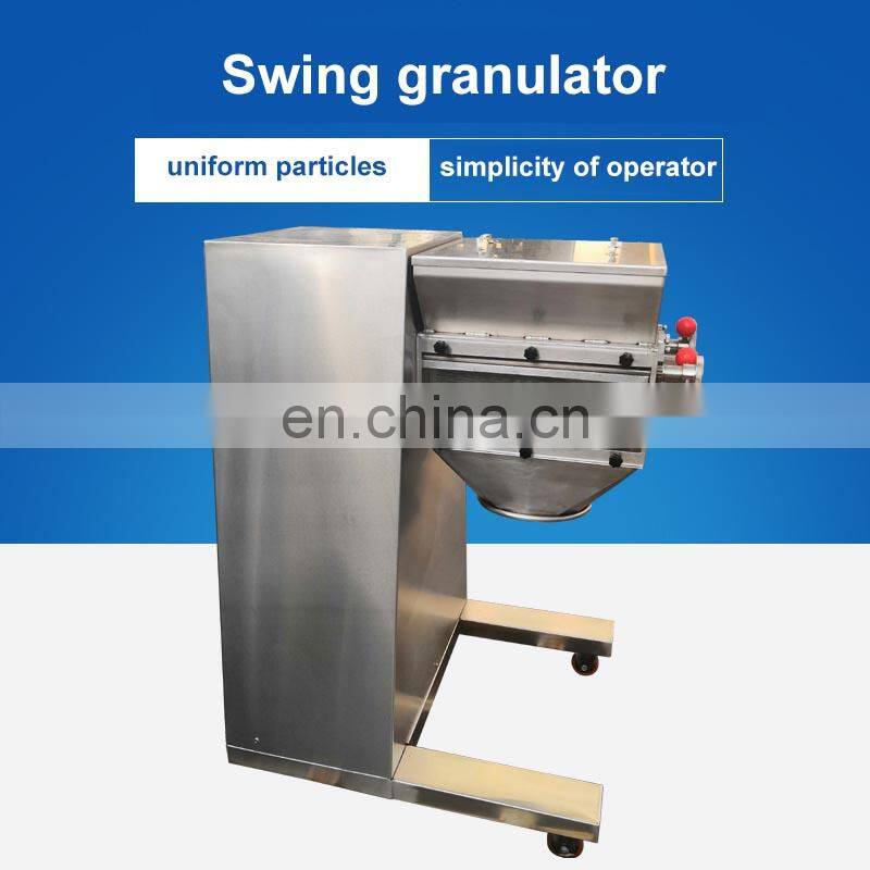 ○ This Oscillating granulating machine makes use of the rolling motion of rotating barrel, granulates the wet powder materials into granule by sieve, it also can be used to crush agglomerate materials into small granules directly.