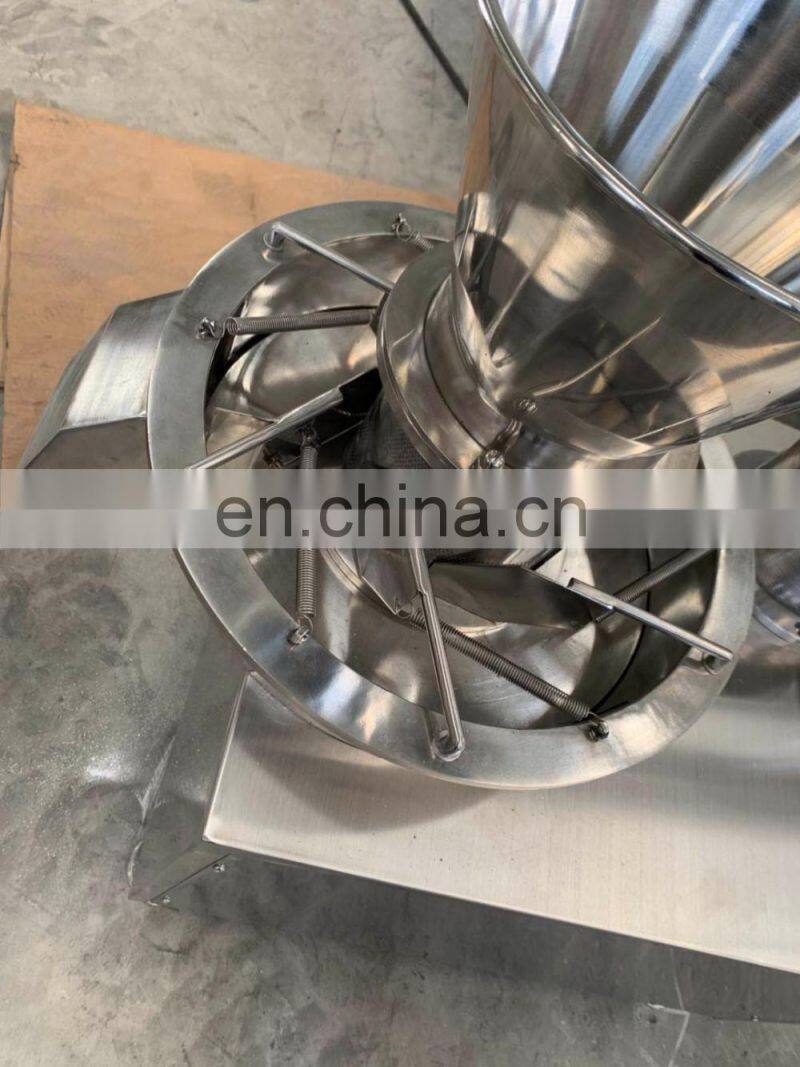 The rotating granulator rotates the grinding cutter and the pressing cutter in opposite direction by changing gear speed and direction. The pressing cutter press down the material through the inclined plane. The grinding cutter extrudes the material to the screen barrel through the arc under the action of centrifugal force, so as to obtain the required particles. It is suitable for granulation of pharmaceuticals, chemical industry, food, Chinese medicine granules, food, solid beverages, chicken essence and other viscous materials.