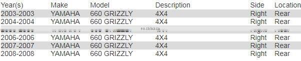 FOR 2003-2008 YAMAHA 660 GRIZZLY RIGHT
