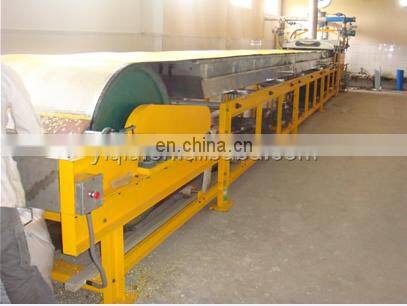 The machine is mainly composed of blanking die granulation forming head, cooling conveying stainless steel belt and pulley, spray cooling system, transmission system, heat preservation device, frame, scraper and so on. The blanking die granulator head is mainly composed of die sleeve and mandrel. Spray cooling system is mainly composed of sprinkler head, water tank and so on. The transmission system is mainly composed of the speed regulating motor of the reducer.
