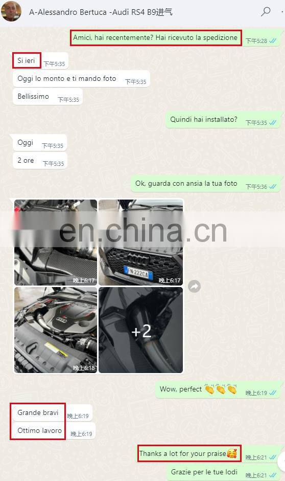 Home > Products > Auto Parts for AUDI > High Performance Car Intake System Modified Accessories Flow Carbon Air Intake Kit For AUDI RS4 S4 B9 3.0T