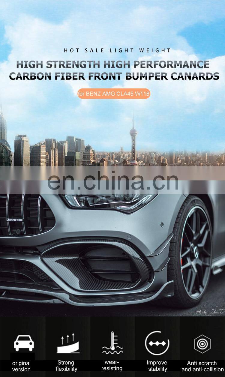 Quality Assurance Full-dry Carbon Fiber Process Auto Parts Car Skirt Body Front Bumper Canards For BENZ AMG CLA45 W118