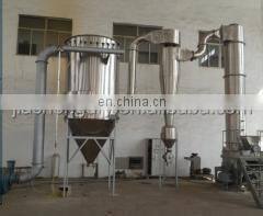 This machine has a wide application scope, it can be used for drying in fire retardant, molecular sieve, rubber and plastic assistance, pesticide, pigment, dyestuff, fine chemicals, feedstuff, pharmaceutical and part intermediate industries. Hot air enters into stirring, crushing and drying chamber in a certain speed from the air inlet that at the bottom of dryer and producers vigorous eddy airflow. Material is acted by centrifugal force, shearing force, impacting and friction, the particle size