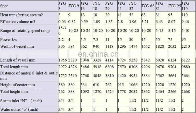 Due to adopting indirect heating method, there will not be large amount of heat energy being taken away, besides there is additionally heat-insulation outside of heating drum body, therefore for paste materials, it only consume 1.2 kgs of steam to