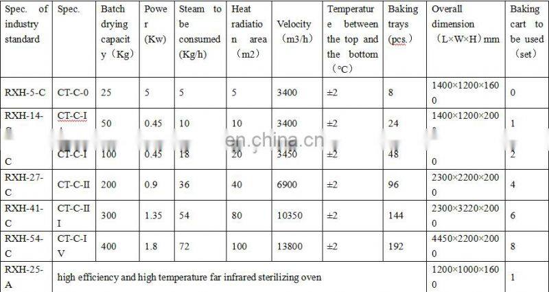 5. For CT-C-I, electric heated, rated power consumption: 15Kw, real consumption: 5-8Kw.