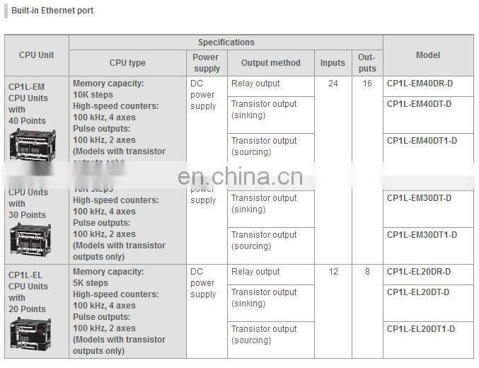 | CP1H-EX40DT-D | 24 | 16 | DC, Transistor, with Ethernet |