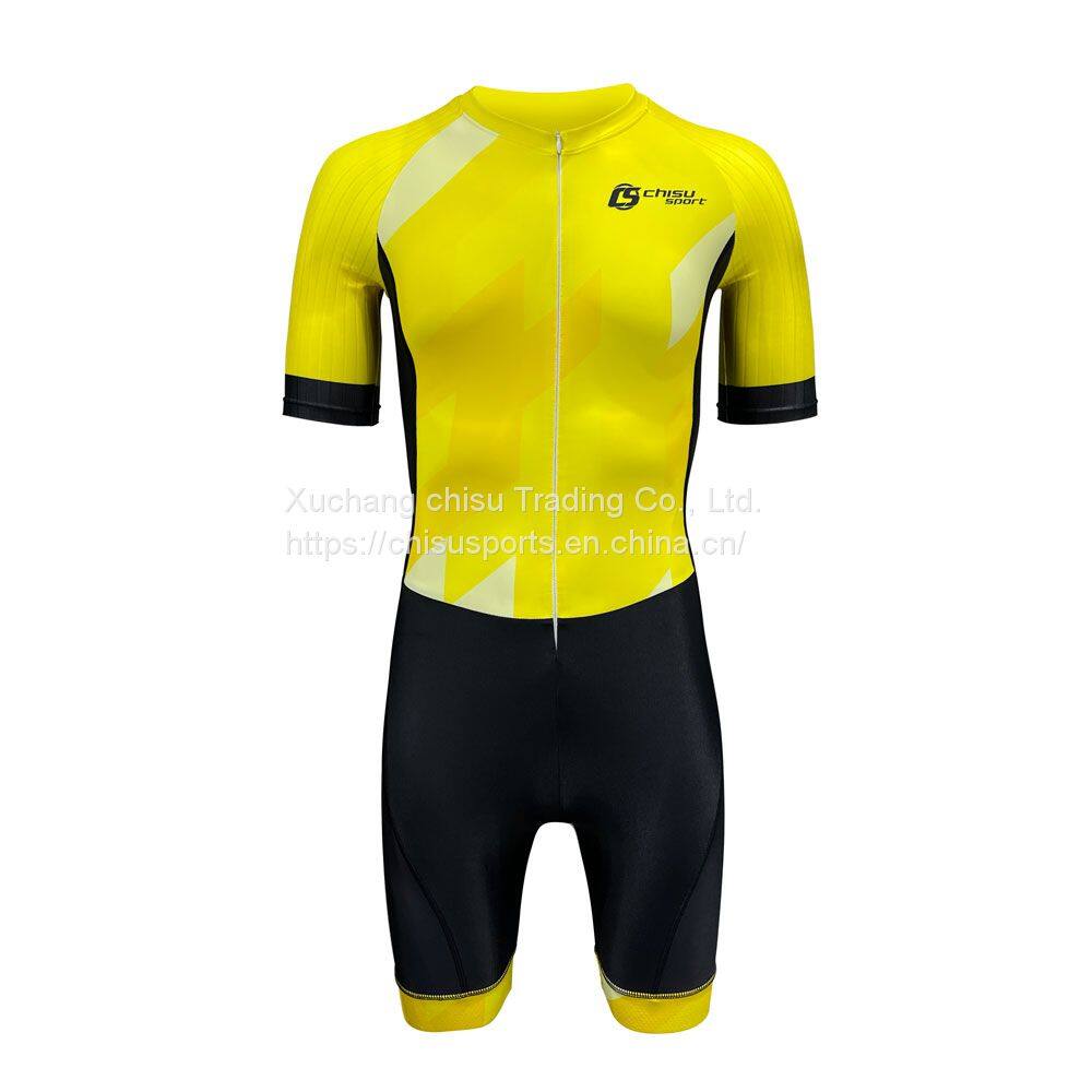 China Manufactory Teamwear Custom Price Hot Design Bright Yellow Swinsuits for Short Women Custom Speed Skating Suit Custom Short Sleeve Quick-dry Speed Skating Skin Suit
