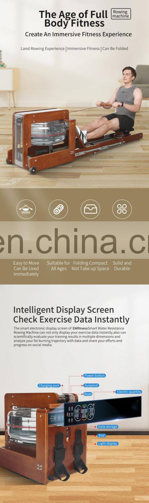 Home Fitness Custom Folding Rower Wooden Foldable Water Rowing Machine