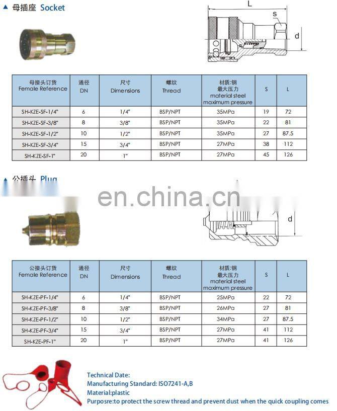 6. ZJ-YAA quick disconnect fitting comply to the standard of ISO7241-1A.