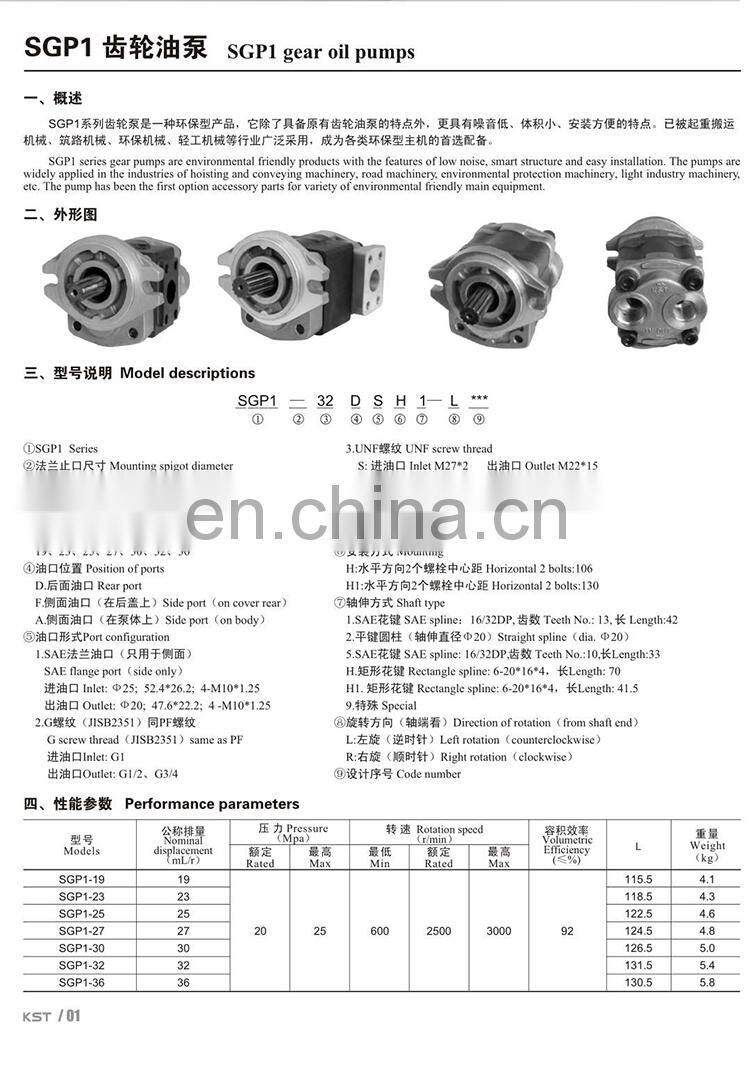 19/23/25/27/30/32/36ml/r SGP hydraulic gear pump