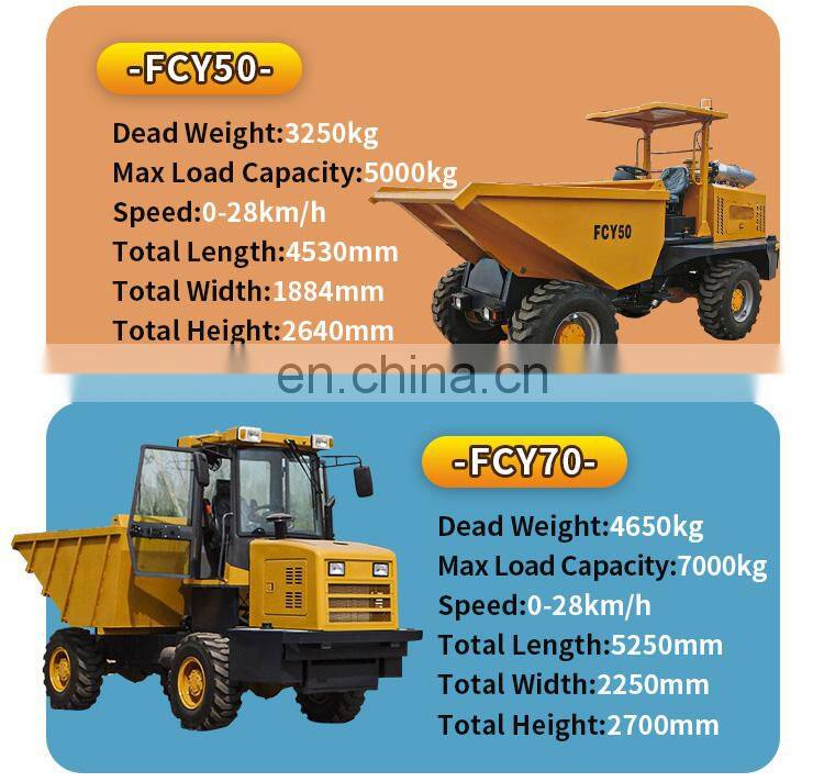 Hydraulic FCY50 4x4 Dumper Construction off Road Tipper All Terrain 5 Ton Dumper Rubber Truck With ce