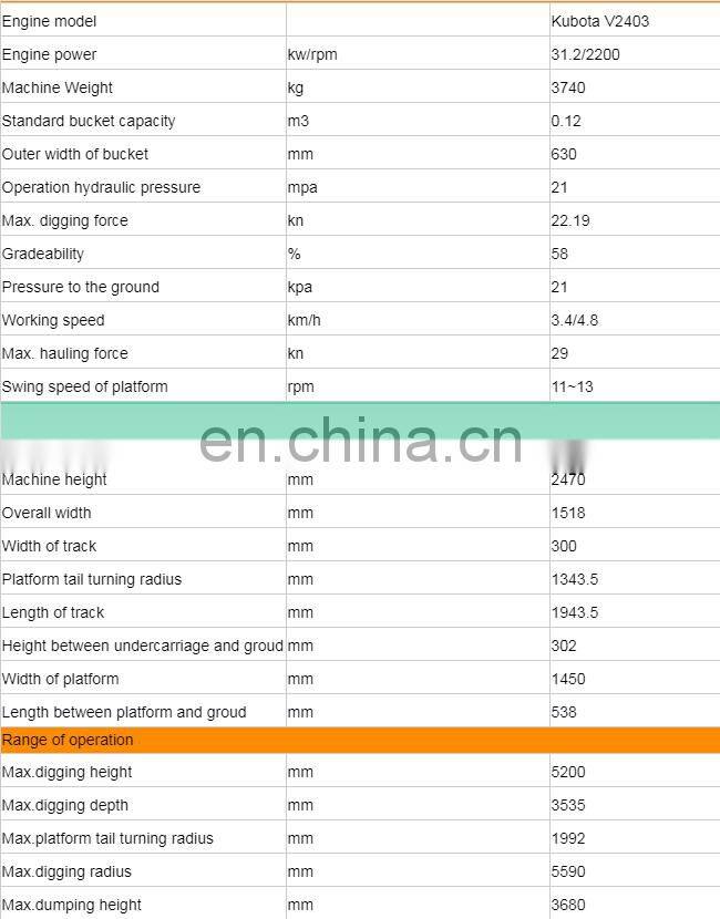 YC35-8 hydraulic excavator has beautiful design, its platform can rotate 360 degrees. The excavator is equipped with rubber track, it's reliable and of user-friendly. With multiple functions of digging, grabbing, drilling, bull-dozing, ditch-cleaning and rock-breaking, this excavator can be widely used in various construction projects such as water supply, power supply, gas supply, telecommunication network, farmland and garden works etc.