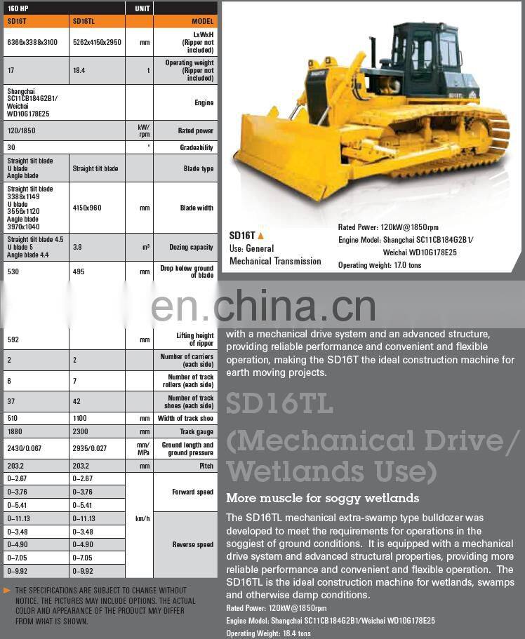 SHANTUI 160hp SD16 bulldozer SD16R for landfill SD16T SD16TL Mechanical Drive and Wetlands Use price