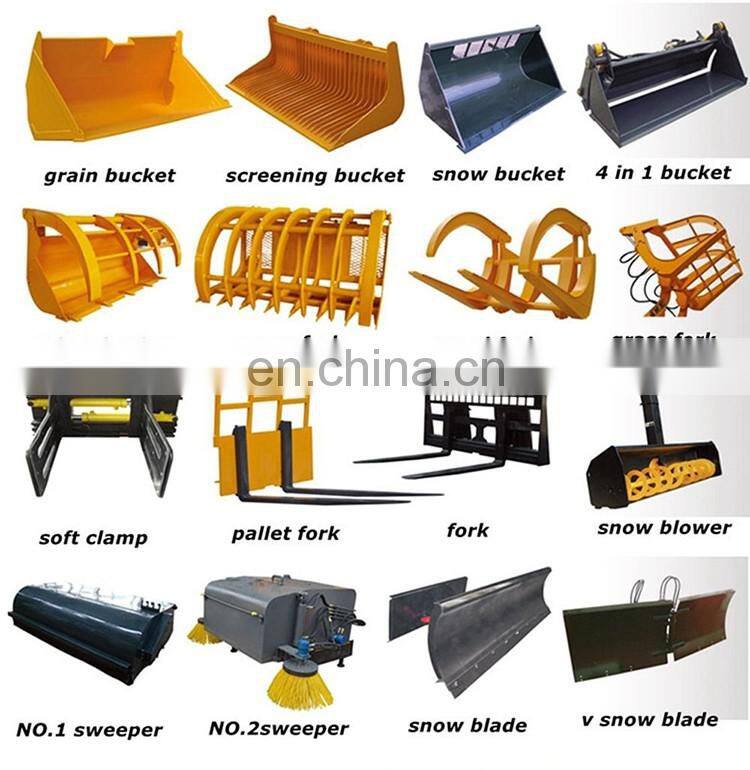 5.This mini front loader can allocate kinds of attachments,such as pallet fork,pipe fork,snow blade,sweeper,lawn mower etc.