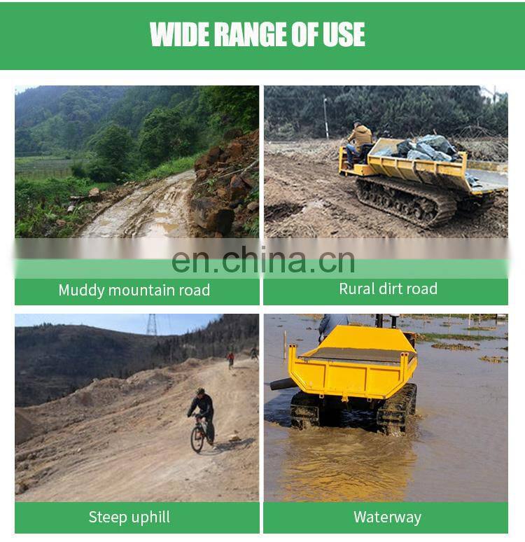 HENGWANG brand crawler mini dumper adopts the most advanced technology and design to solve the problems for mountainous rural area and farm for transportation of agriculture products such as rice, bamboo, wood , fruit, oil palm, durian, pineapple and farm use materials such as fertilizer, tools,soil,sand and also helpful in construction site and short distance transport. It is widely used in China south and west hilly rural area and has been proved it reliability and adaptability . It is labor saving with lower cost and strong power for farmers' work which dump truck can not accomplish and bring users with real economic benefits.