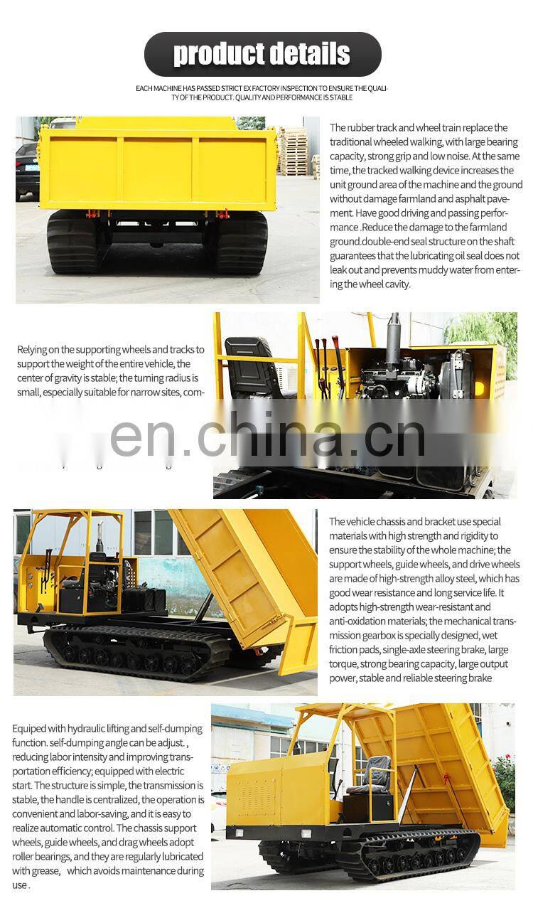 This crawler mini dumper is easy to operate, has complete gear positions, and has a small load-bearing grounding pressure. this crawler mini dumper be qualified in deeper mud pits and pools and complex stone pavements. In addition, the mini dumper has a small size than the ordinary transporter that can crossing of the polar region and can easily pass through narrow rocks.