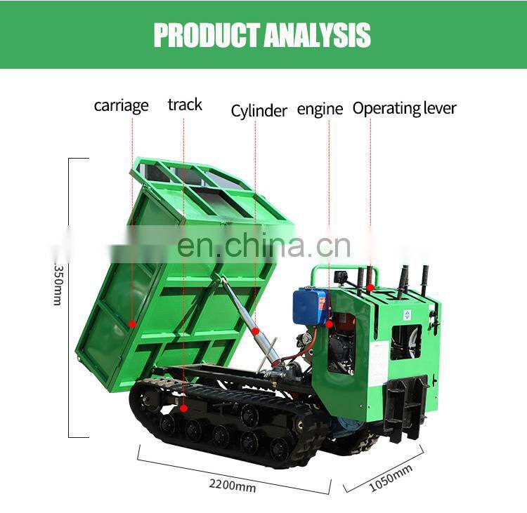 This crawler mini dumper is easy to operate, has complete gear positions, and has a small load-bearing grounding pressure. this crawler mini dumper be qualified in deeper mud pits and pools and complex stone pavements. In addition, the mini dumper has a small size than the ordinary transporter that can crossing of the polar region and can easily pass through narrow rocks.
