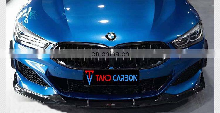 TAKD Brand 100% Dry Carbon Fiber Car Body Modified Kits Gloss Black Front Bumper Splitter Lip For BMW 840i