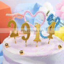 Hot Sale 0~9 Golden Digital Candle Creative Smokeless Birthday Candle for Cake Decoration Paraffin Wax Numbers Birthday Candle
