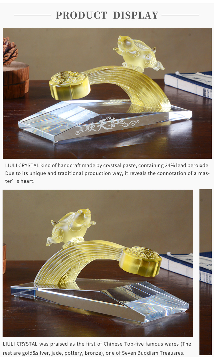 LiuLi Glass Lost-Wax Art Crystal Feng Shui Decoration - Pig Statue Chinese New Year Gift