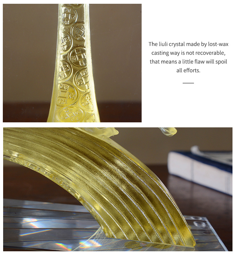 Saint-View is factory directly selling crystal glass liuli by lost-wax casting method, which is also known as pate de verre. Our products including: gift & craft, sculptures, figurines, buddha statues, vases, home decor items, plaque and brick for architecture, etc. We accept OEM&ODM customized production, offer designing, moulding, mass production and fitting solution for personalized cases.