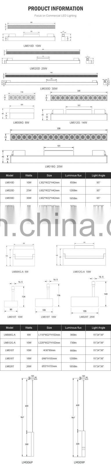 LM018G | 20W | L328*W22*H42mm | 15°24°38° | 1050lm | ||||
