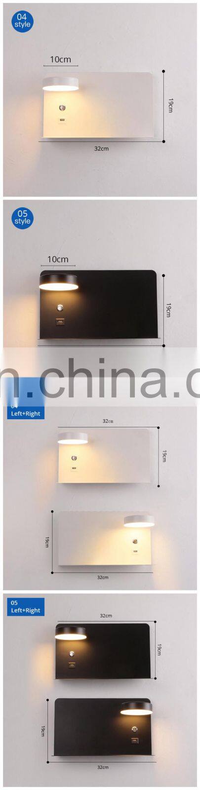 USB Wireless Charging Bedside Reading Wall Lamp Modern Simple Nordic Hotel Room Indoor LED Wall Light