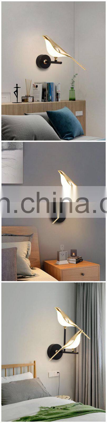 - New Wall Led Sconce Rotatable Adjustable Art Metal Bird Light LED Family Bedroom Bedside Hotel Interior Modern Bird Wall Light