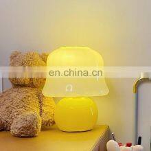 Middle Handmade Glass Table Light Bedroom Bedside Desk Lamp Cream Mushroom LED Table Light