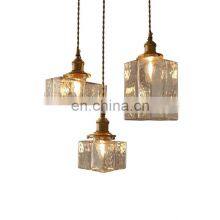 Retro Glass Pendant Lights Nordic Minimalist Bedside Light Creative Restaurant Balcony Brass Square Hanging Lamp