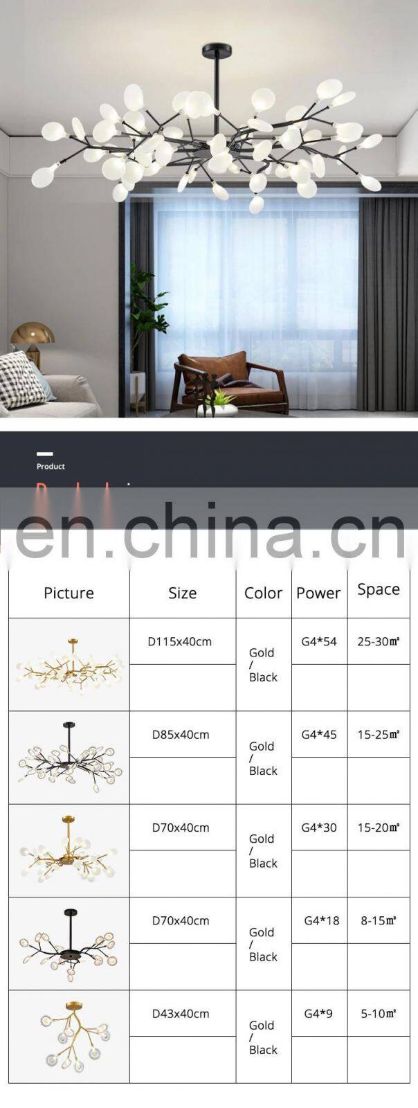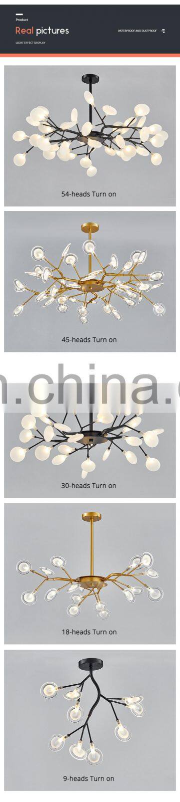 Gold Branch Modern LED Chandelier Nordic Home Indoor Lighting Luxurious Decor American Firefly LED Hanging Lamp