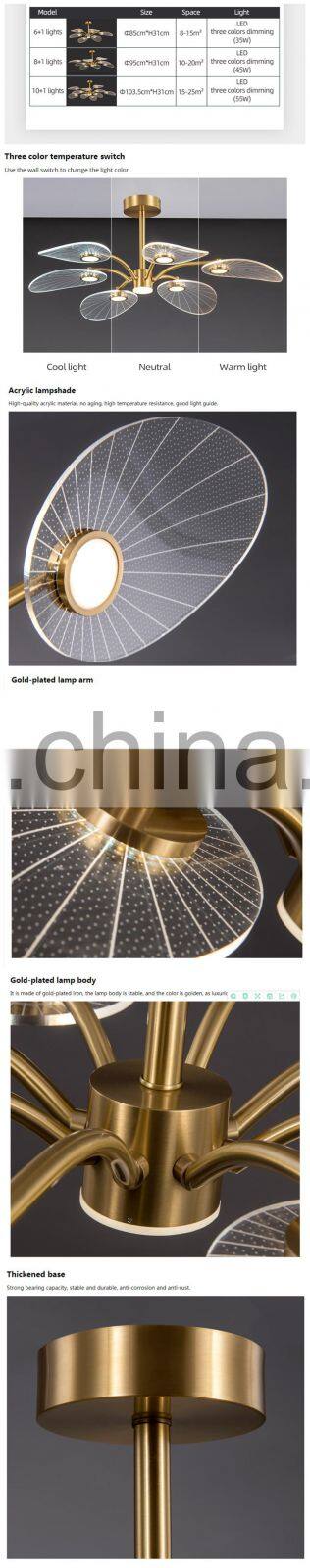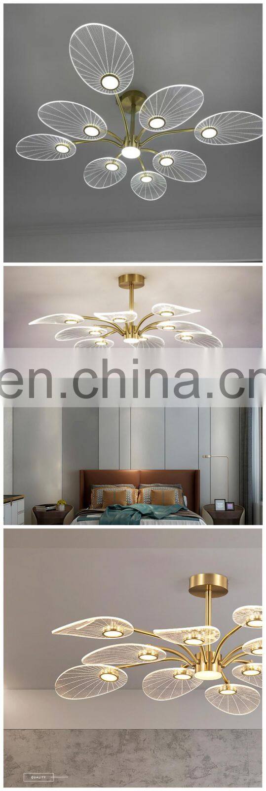 Modern Copper Chandeliers Light For Living Room Lotus Nordic Leaf Shape Pendant LED Lamp