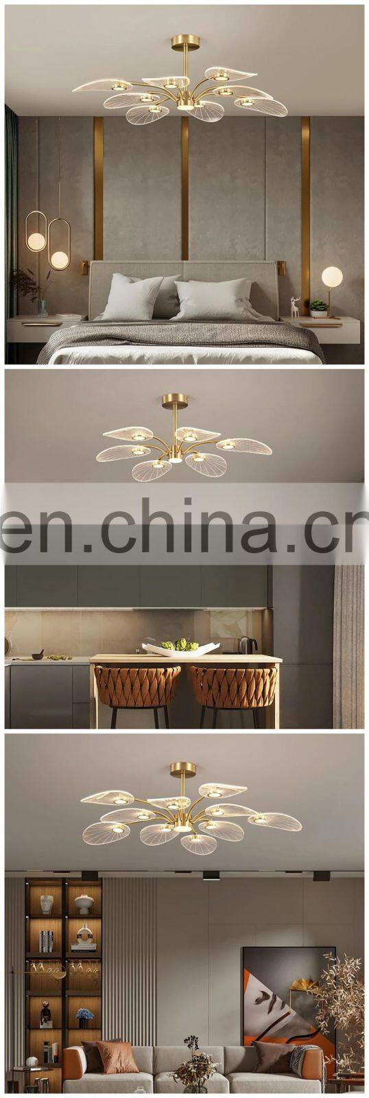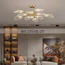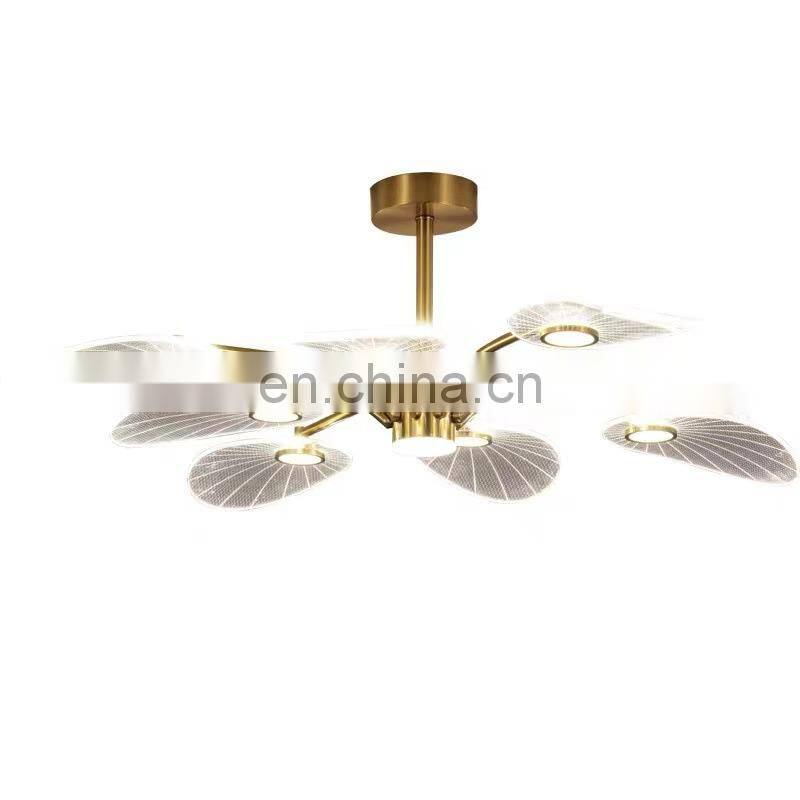 Home > Products > Ungrouped > Modern Copper Chandeliers Light For Living Room Lotus Nordic Leaf Shape Pendant LED Lamp
