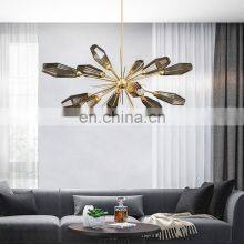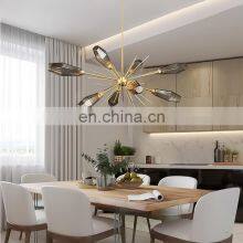 Industrial Modern Loft Hanging Light Gold Metal Glass Starburst Sputnik Chandelier LED Pendant Lamp for Living Room