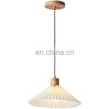 Modern INS Pleated Pendant Light Bedside Solid Wood Hanging Lamp For Home Table Dining Room Japanese Minimalist Creative Lamps