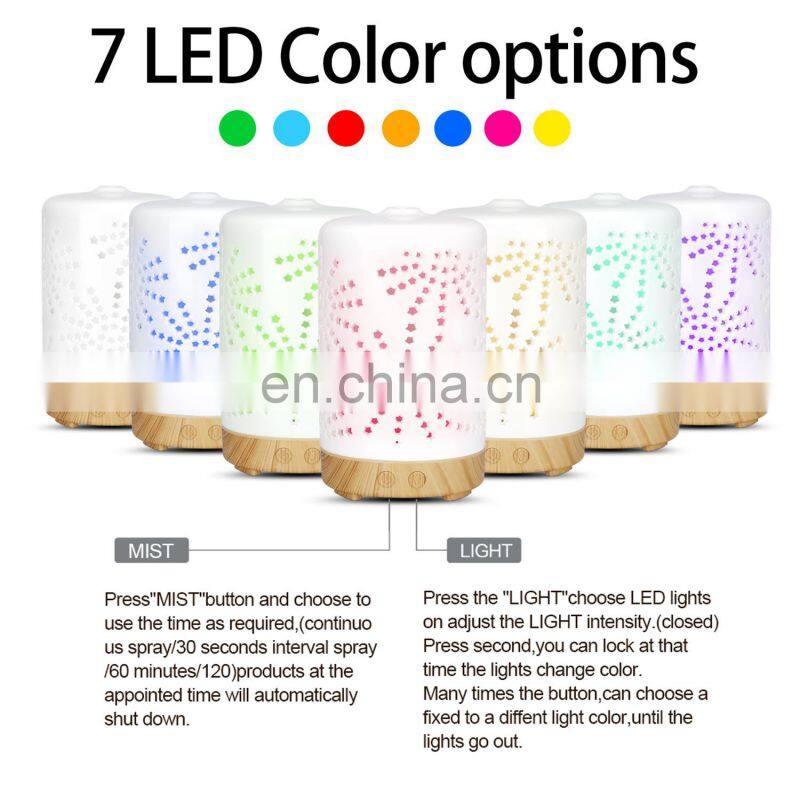 Hot Selling 7 Color Changing Led Light Humidifier Aroma Diffuser 120ml Wooden Base Air Ultrasonic Humidifier