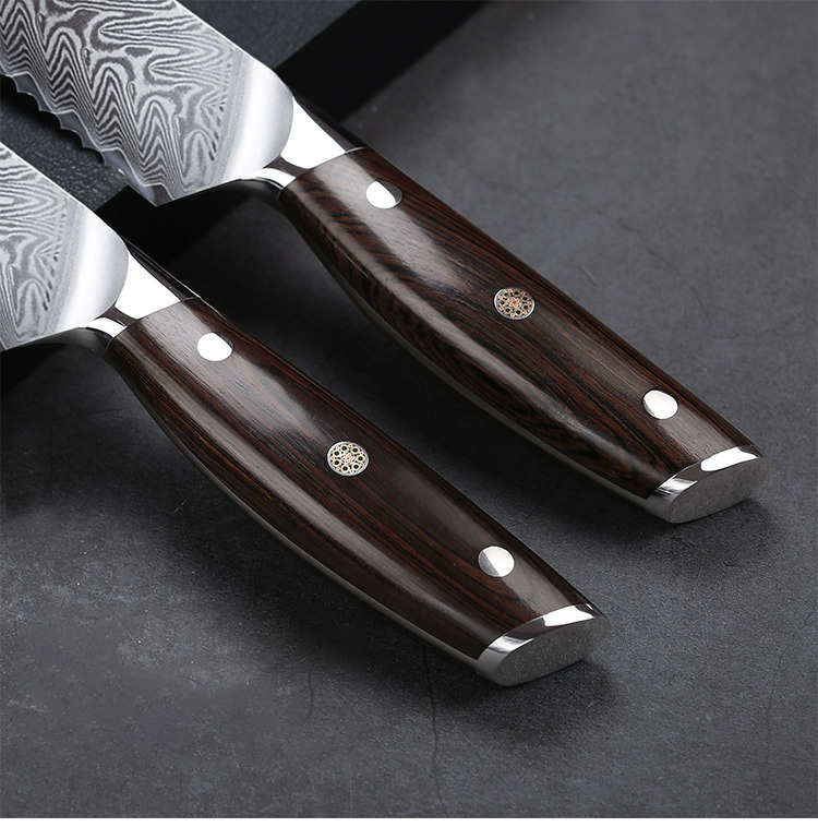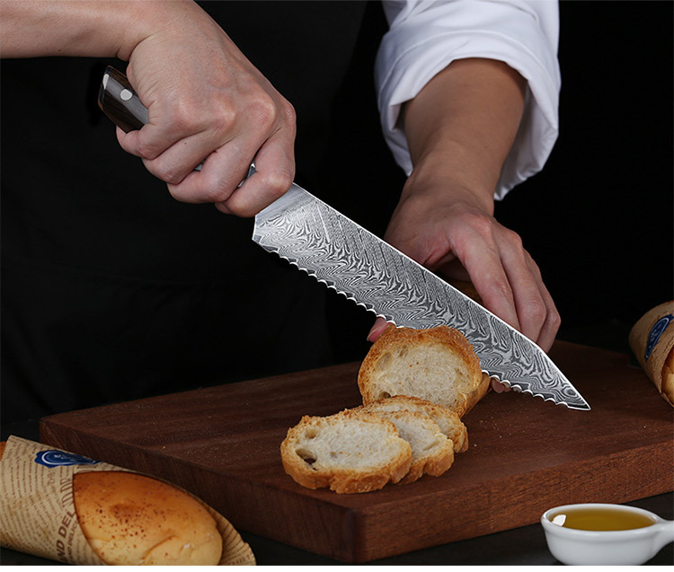 Triple Rivet Collection 8 Inch 67 Layer Damascus Stainless Steel Bread Knife With Black G10