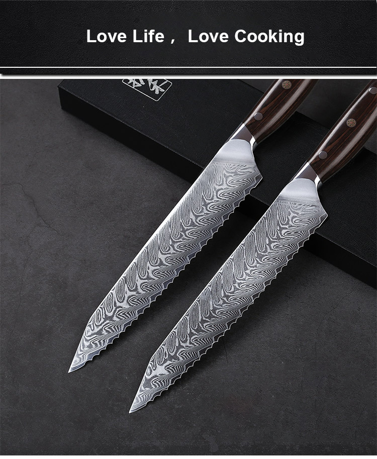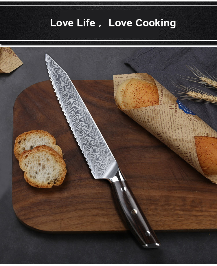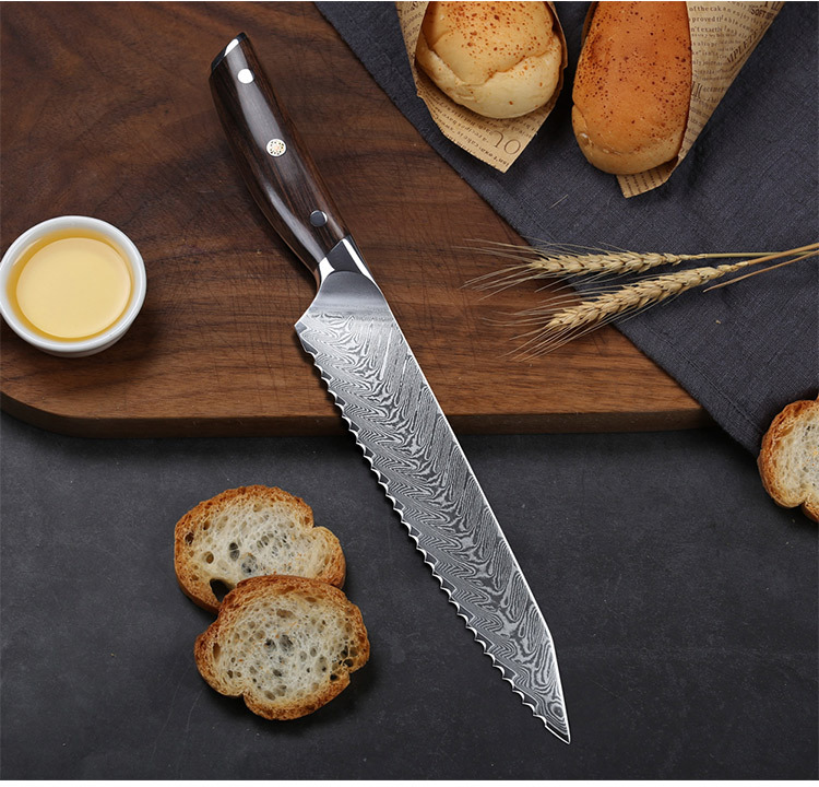 Kitchen Bread Knife Serrated Design Damascus Stainless Steel Blade 8 Inch Chef Knives Bread Cheese Cake Tool