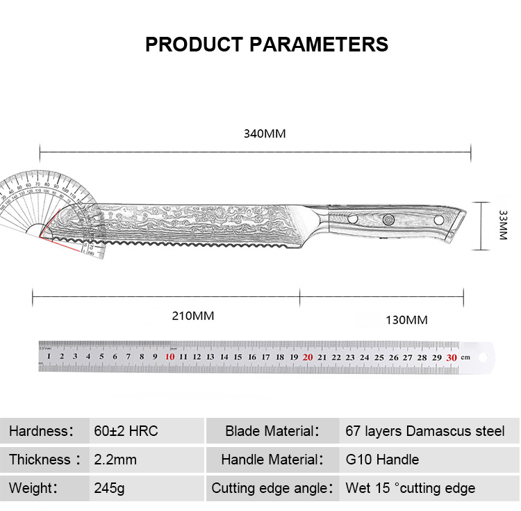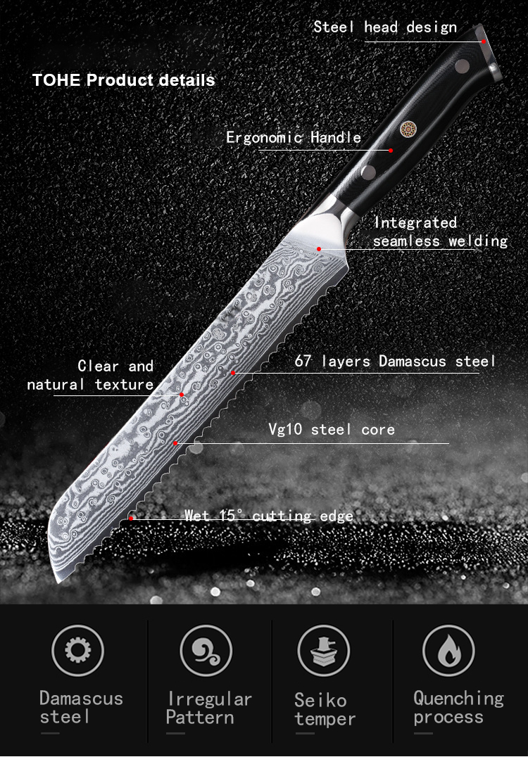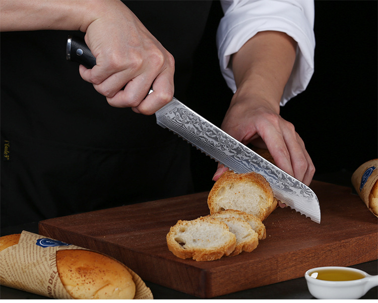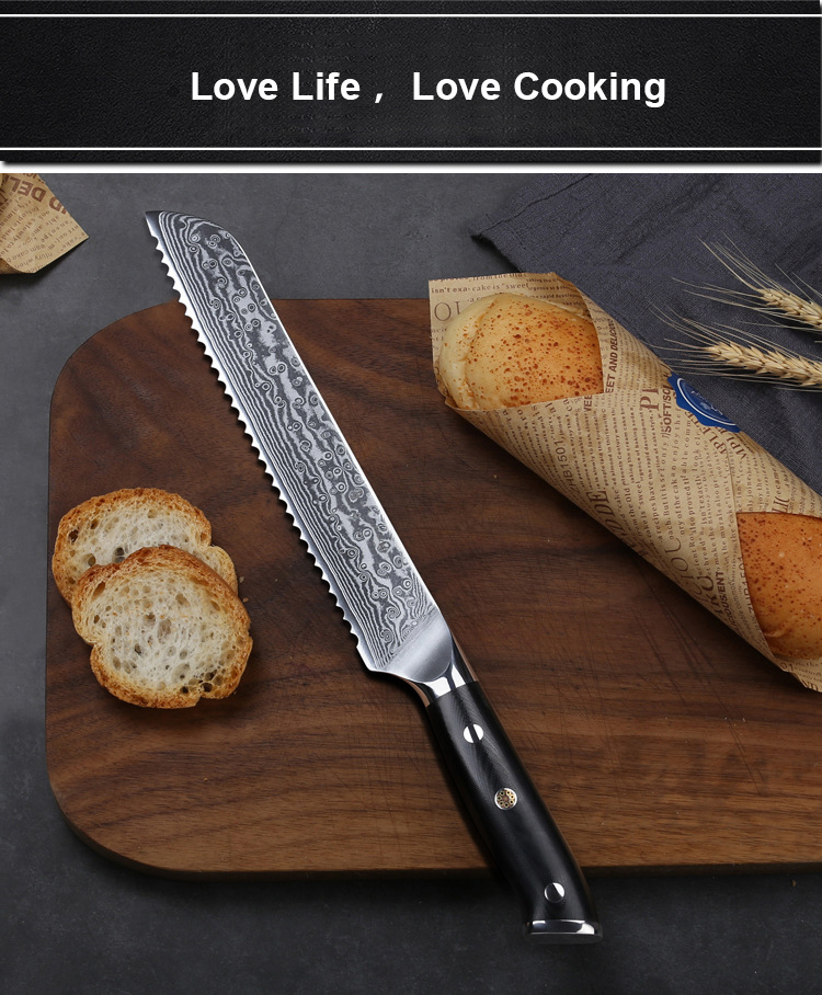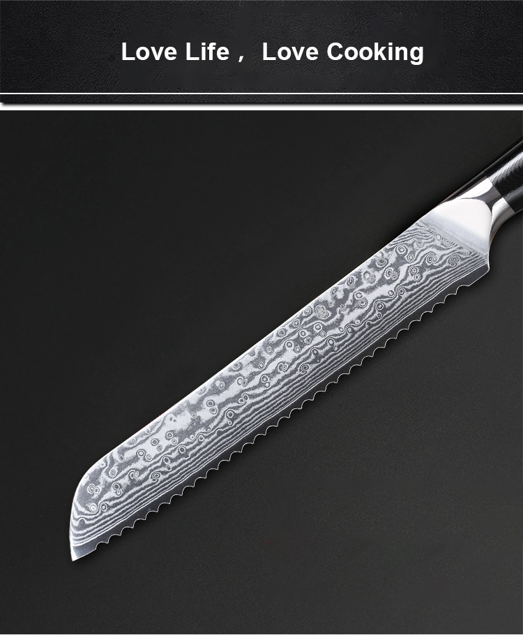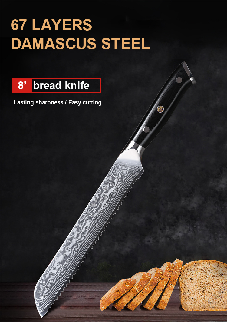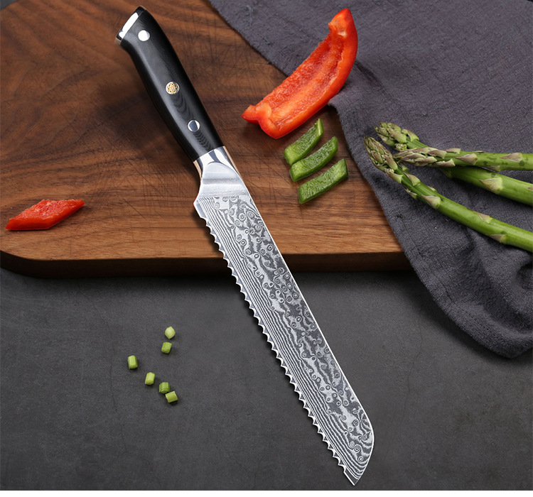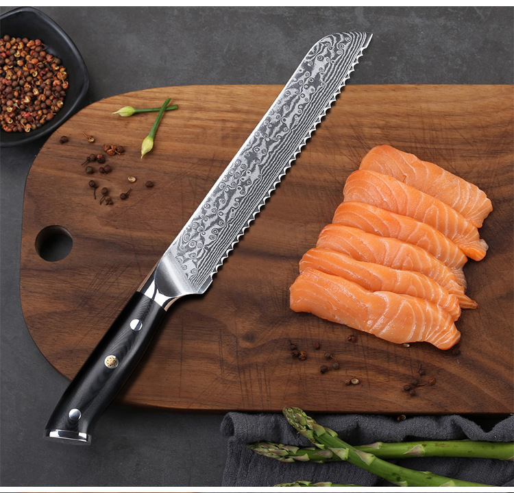 Home > Products > Kitchen knife > Triple Rivet Collection 8 Inch 67 Layer Damascus Stainless Steel Bread Knife With Black G10