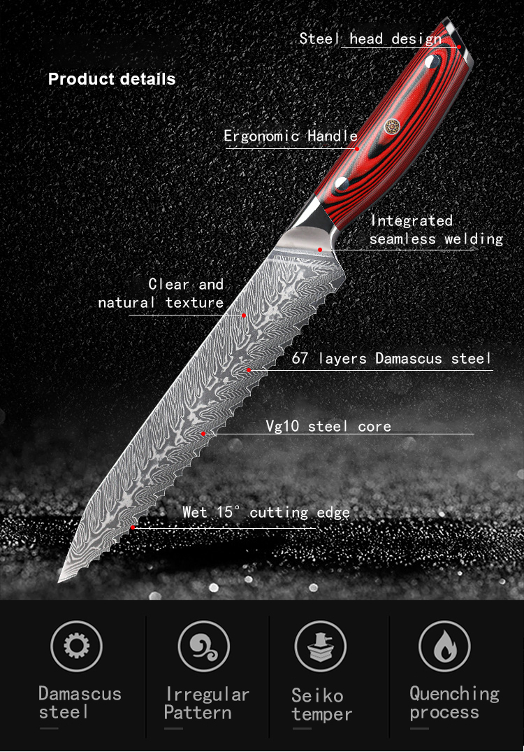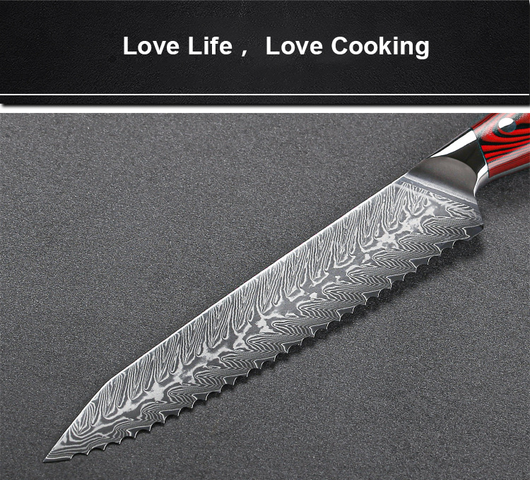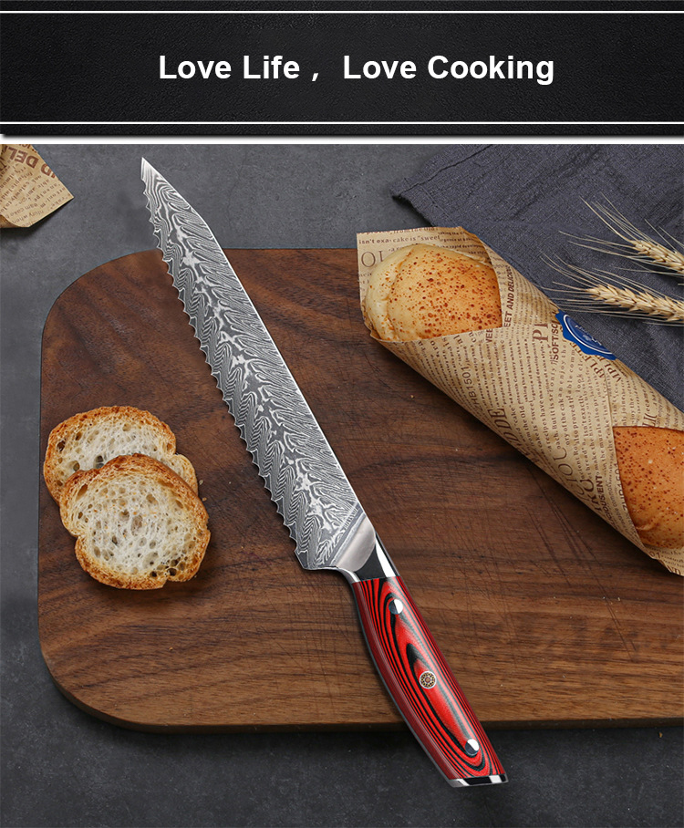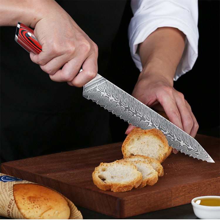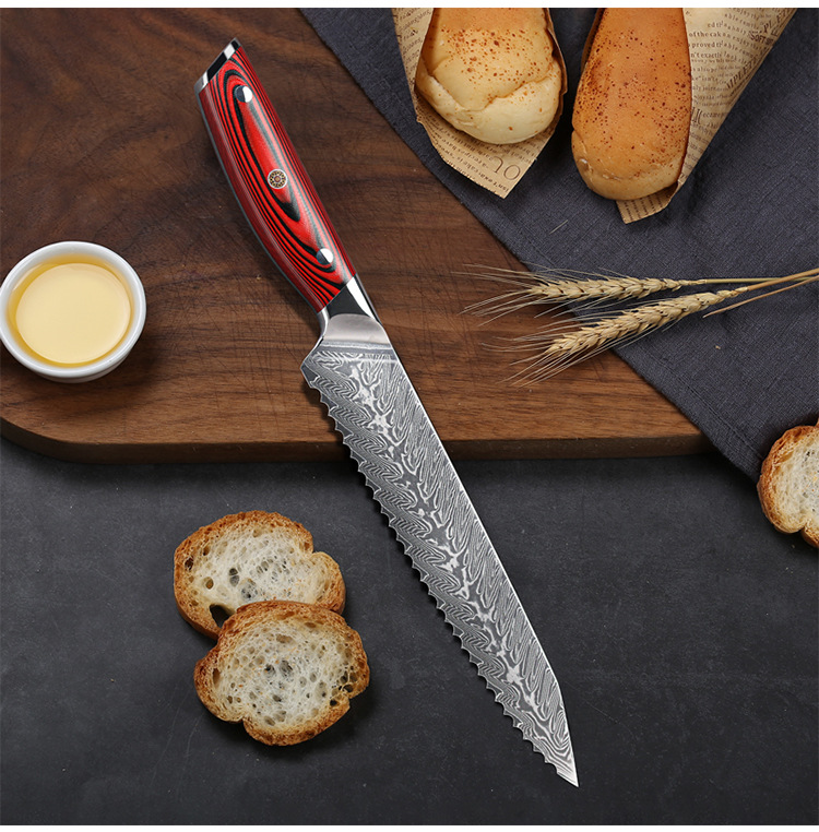 Home > Products > Kitchen knife > 8 Inch Bread Knife Damascus Stainless Steel Professional Grade Bread Kitchen Knife Serrated Edge Cake Crusty Bread Knife