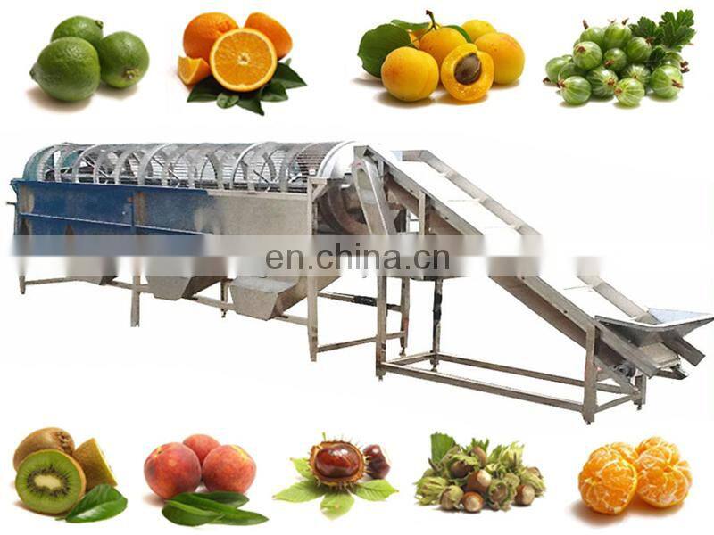 Working principle: Pour the fruit into the hopper of the elevator and transport it to the drum. The built-in auger pushes forward. The appropriate apertures from small to large are dropped into the receiving trough and discharged from the pouring port to complete various sizes. The specifications are evenly separated, and the grading aperture can be customized.