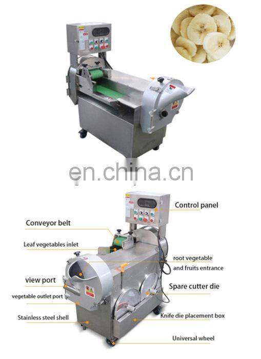 Multi-functions cutting machine can cut root vegetables and fruits , it can cut fruit slices, such as potato chips,  plaintain chips, and it can be used on dicing before fruit juicing. And it can shreds too, thickness specifications can be customized. It's a multi-purpose machine, powerful function, high yield, easy to replace the knife plate, simple operation, easy to clean, the bulb root cutting machine is suitable for food processing plants, food-service industry, dining hall, food and beverage distribution center use.