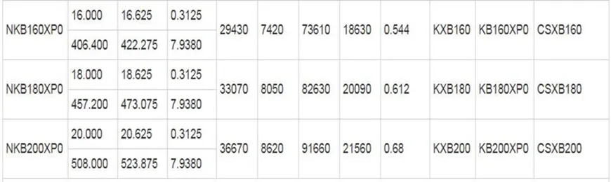 The bore size of KB SERIES are ranged from 2 inches to 20 inches and the outer diameters are arranged from 2.625 inches to 20.625 inches, while the Cross Section is constant, that is 5/16 inch.