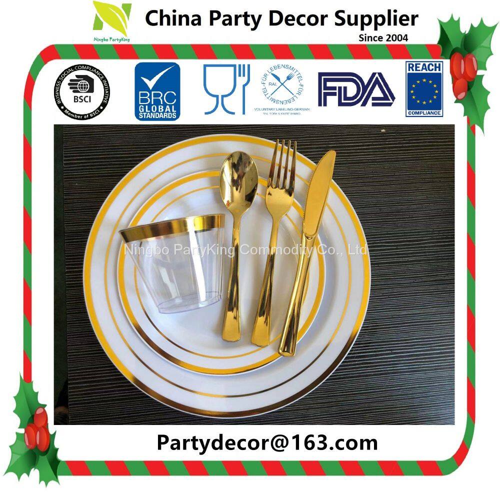 - New Arrival Gold Rim Plastic Charger Plates Wedding Decoration Beaded Bulk Plates