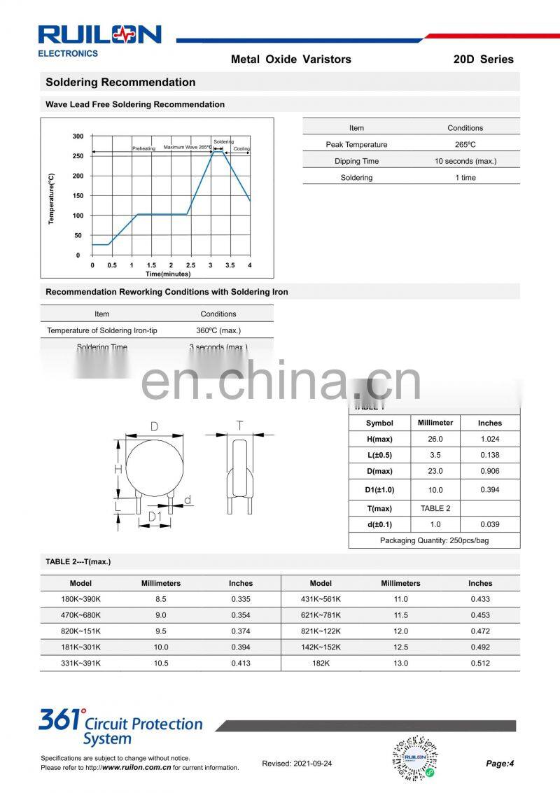 RUILON 25D391KA High Voltage Varistor Zinc Oxide Varistor 25D Series Radial Leaded Varistors for Automotive Electronic System