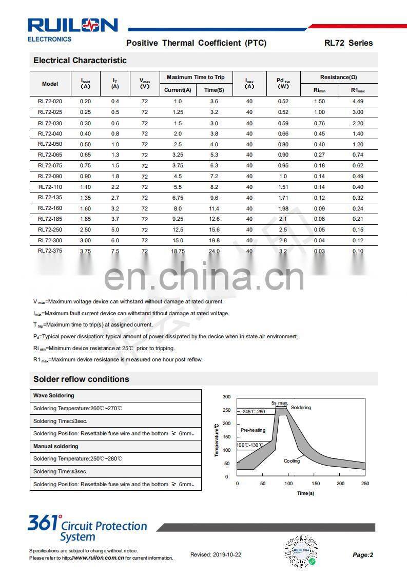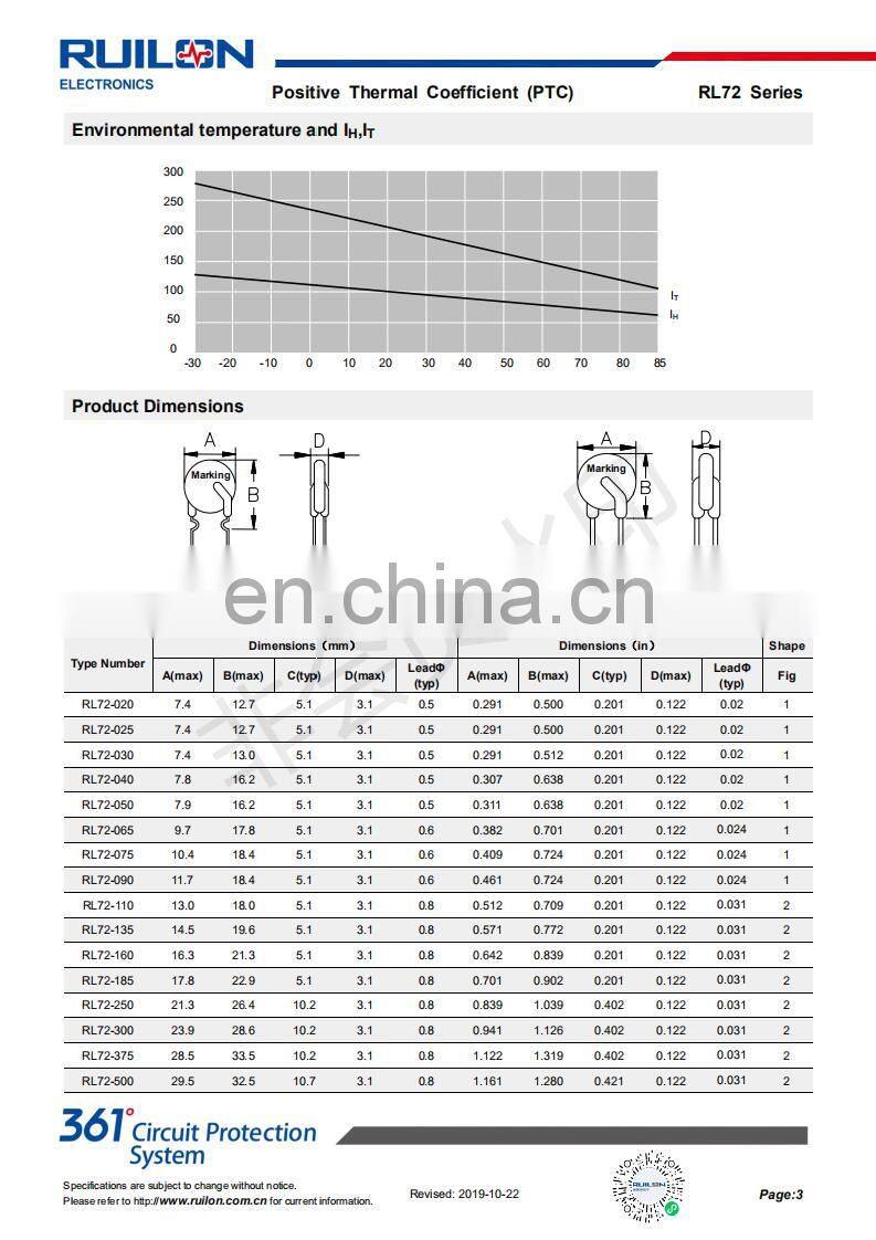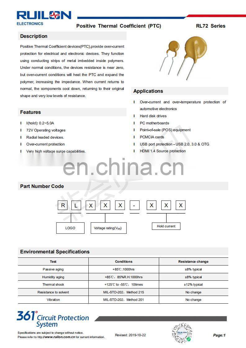 Ruilon Positive Thermal Coefficent (PTC) 0.05~2.60A for Set-top-box Mobile Phones Battery and Port Protection