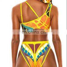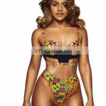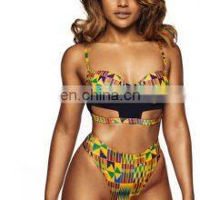 Customized Summer Women Solid Bikini African Print Swimwear Bikini Frauen Badebekleidung