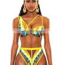 Summer Women Solid Bikini Women African Print Bikini Set Swimwear Push-Up Underwire Padded Bra Swimsuit Beachwear