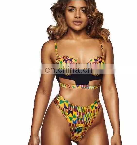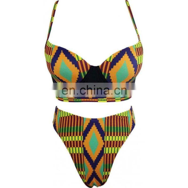 Customized Summer Women Solid Bikini African Print Swimwear Bikini Frauen Badebekleidung