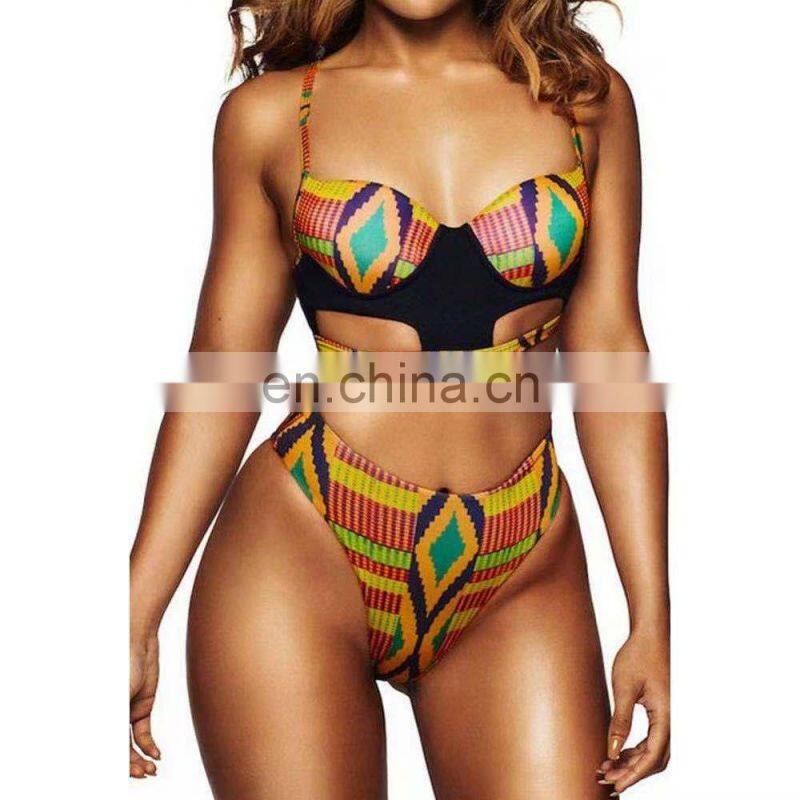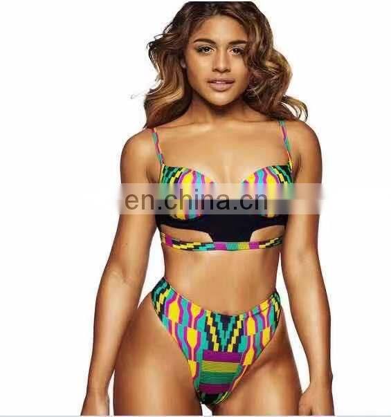 Customized Summer Women Solid Bikini African Print Swimwear Bikini Mujer Traje de Bano